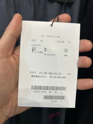 QUALITY 本体 綿100% 裏地 綿100% チュール部分 ポリエステル100%