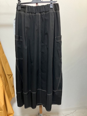 ワイドパンツのような立体感、バレルシルエットで魅せるロングスカート。