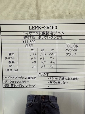 ハイウエスト裏起毛デニム 25460