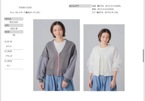 GALENA チュールレイヤード裏毛カーディガン 70060-3105