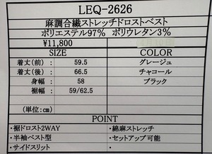素材 ポリエステル97% ポリウレタン3% 着丈59.5-66.5 身幅58